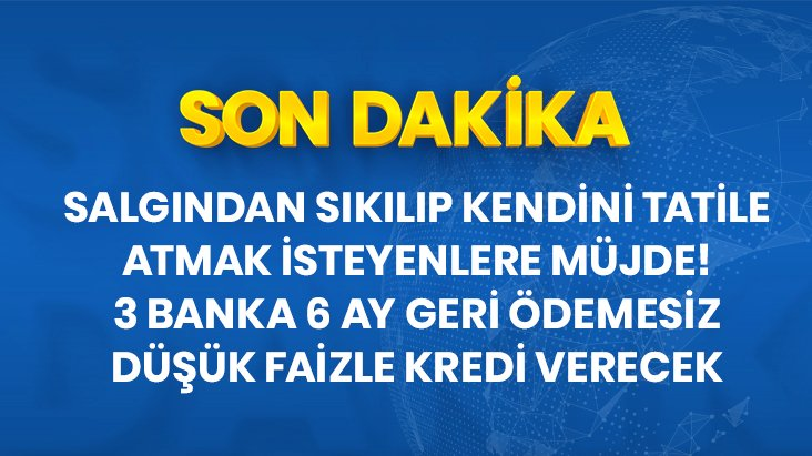 Son dakika: 3 kamu bankası, koronavirüs salgını sonrası tatil planı yapan vatandaşlara destek olacak. Seyahat acentelerinden tatil paketi satın alacak müşterilere 10 bin TL’ye kadar 6 ay ödemesiz 36 ay vadeli uygun şartlarda finansman imkanı sunulacak.