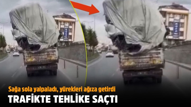 İstanbul Sultangazi’de hacminin üzerinde yük alan kamyon, trafikte sağa sola yalpalanarak ilerledi. Kapasitesinin üzerinde yük alan kamyon hem kendi hem de trafiktekilerin canını tehlikeye attı.