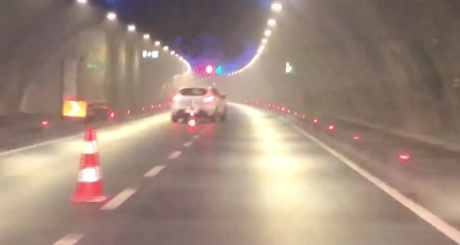 Avrasya Tüneli’nde şeritlerin arasına koyulan dubalara makas atan sürücü tehlike saçtı.