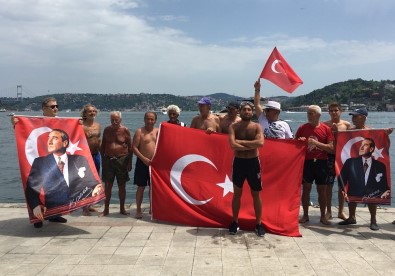 ‘Boğaz Yüzücüleri’ yaptıkları açıklamanın ardından hep birlikte İstanbul Boğazı’nın serin sularına atlayarak Türk Bayrağı açtı. Yüzücülerin boğazda bayrak açmaları renkli görüntüler oluştururken, çevredeki vatandaşlar da etkinliğe ilgi gösterdi.