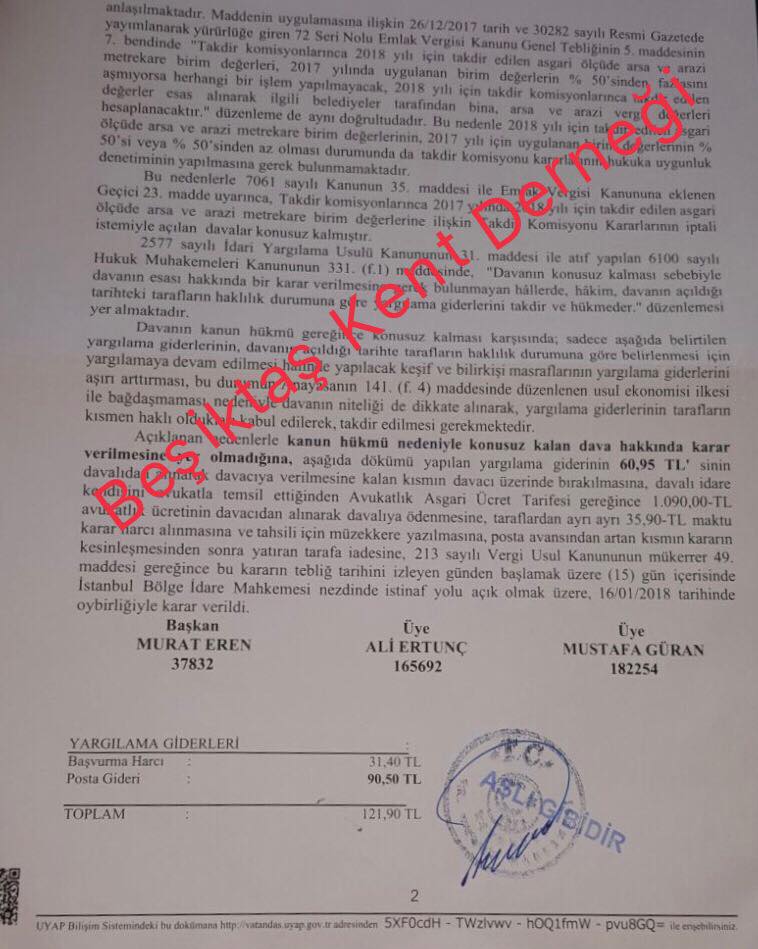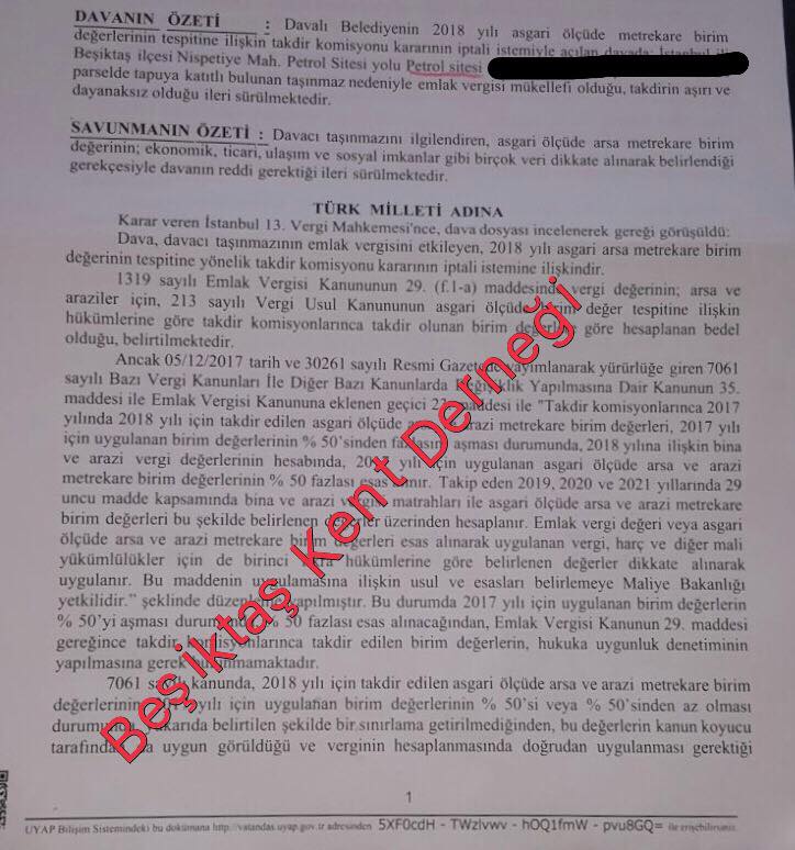 BEŞİKTAŞ BELEDİYESİ’NİN NİSBETİYE MAHALLESİ PETROL SİTESİ’ne ait 2018 FAHİŞ ARTIŞINI DEVAM ETTİRDİĞİNİ BİLMEYEN MAHKEMENİN;