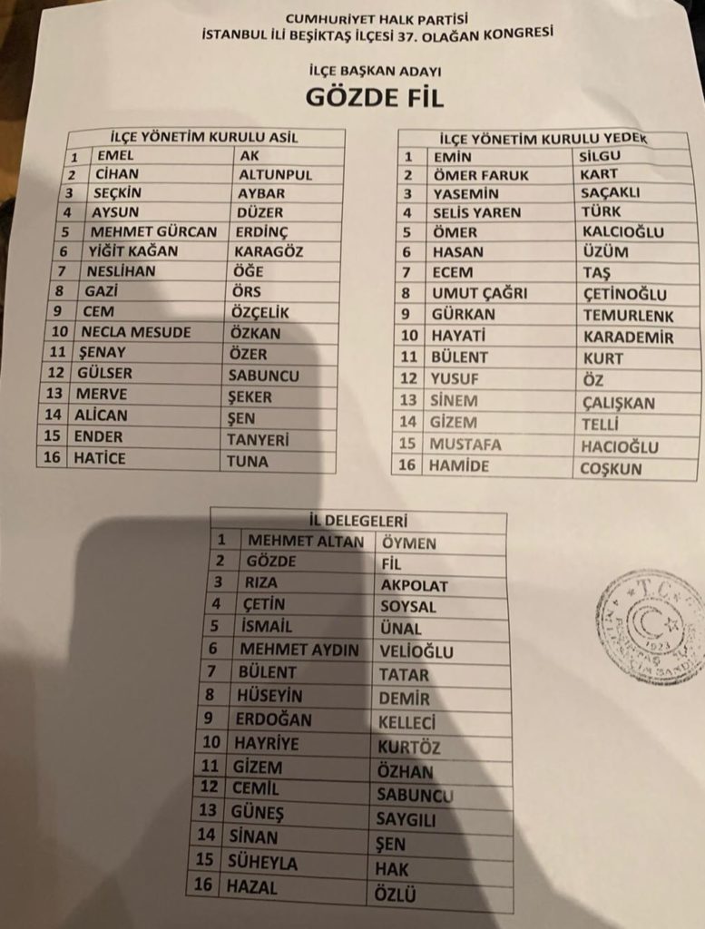 Beşiktaş CHP İlçe Başkanlığına GÖZDE FİL seçildi.
