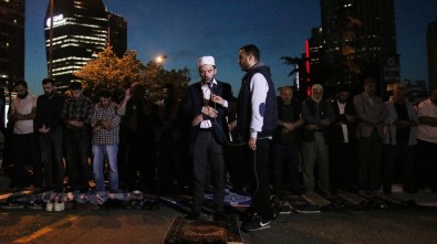 Beşiktaş’ta bulunan İsrail Konsolosluğu önünde toplanan Filistin’e Geri Dönüş Platformu üyeleri burada akşam namazını kıldı. Dualar edildikten sonra basın açıklaması yapan grup sessizce dağıldı