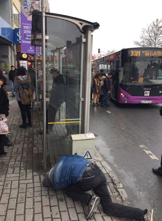 Saat 12:00 sularında Beşiktaş’ta bulunan Başbakanlık ofisinin tam karşısında bulunan otobüs durağının kenarında yerde baygın halde yatan genç vatandaşları şaşırttı kısa bir şok yaşayan vatandaşlar 155 polis ekiplerine ve 112 acil sevis ekiplerine durumu telefonla bildirdiler.