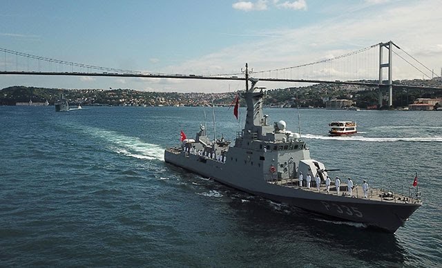 Boğazda hazır bulunan donanma gemileri Barbaros Hayretin Paşa Türbesi’ni selamladı.