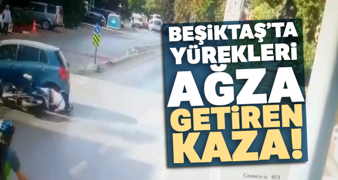 Beşiktaş’ta cadde üzerinde seyir halinde olan motosiklet sürücüsü, yasak yerden “u” dönüşü yapan otomobile çarptı. Motosikletlinin aracın altında kalmaktan kıl payı kurtulduğu o anlar kameralara yansıdı.