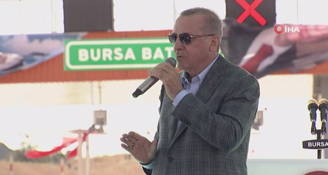 Erdoğan, demokrasiyi hedef alan saldırıları etkisiz hale getirdiklerini belirterek, “Ekonomimize kurulan tuzakları bir bir bozuyoruz. En son Merkez Bankası faizleri indirdi. Daha da inecek. Daha da inecek. Bak müjdeyi veriyorum. Enflasyon da düşecek. Bunu da göreceksiniz. Yatırımcı kardeşlerime buradan sesleniyorum. Yatırımcıların şehri Bursa artık mevcut yatırımlarınızı geliştirin, genişletin. Yatırımı istihdamı arttırın. Bir an önce bizler üretimi arttıralım, rekabeti arttıralım bunun yanında da inşallah büyümeyi arttıralım. Döviz kuru belli seviyenin üzerine çıkamıyor. Bankalar faiz indirimi açıklıyor. Turizmde en başarılı sezonu yaşıyoruz. 50 milyonun üzerine çıktık, artık Türkiye öyle önemli bir destinasyon ki, buraya gelmeden kimse yapamıyor. Bursa’da da görüyorsunuz. Sanayi üretiminden istihdama kadar tüm göstergelerde olumlu yönde yükseliş var. İhracatımız yıllık 170 milyar dolar sınırını geçti. Düzenli şekilde yükselmeyi sürdürüyor. Cari açığımız 58 milyar dolardan 2,4 milyar dolara geriledi” ifadelerini kullandı.