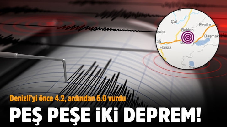 Denizli’de 6 büyüklüğünde deprem meydana geldi! Denizli peş peşe iki büyük depremle sarsıldı. Önce 4.2 büyüklüğünde, ardından da 6 büyüklüğünde iki deprem yaşandı. Depremler 6 dakika arayla meydana geldi.