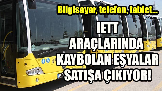 Bir yıldır İETT’de bekletilen eşyalar yarın satışa sunulacak. Diz üstü bilgisayar, cep telefonu, fotoğraf makinesi, tablet, harici güç kaynağı (powerbank), MP3 çalar, saat ve gözlük ile bunların aksesuarları satılacak yarın 09.00-12.00 saatleri arasında İETT İşletmeleri Genel Müdürlüğü Karaköy Gar Binası’nda açık artırma yöntemiyle satılacak.