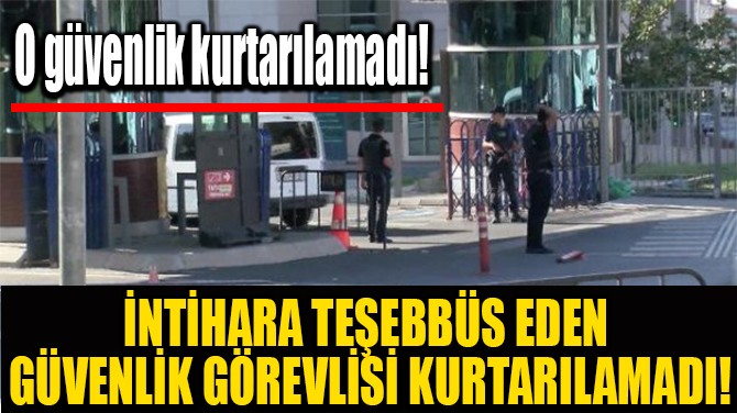 İstanbul Adliyesi’nde intihara teşebbüs eden güvenlik görevlisi kurtarılamadı İstanbul Adliyesi’nde silahla intihara teşebbüs eden güvenlik görevlisi, kaldırıldığı hastanede müdahalelere rağmen kurtarılamadı.