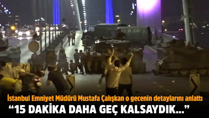 Televizyonlardan canlı olarak yayınlanan o an; darbe girişimin başarısızlıkla sonuçlandığının da ilanı gibiydi. 15 Temmuz darbe girişimi, başladığı yerde; yani Boğaziçi Köprüsü’nde sonlandı. Darbeye direnen 34 şehidin kanlarıyla, gazilerin yürekleriyle İstanbul’da tarih yazıldı. O gecenin ilk saatlerinden itibaren köprüdeki darbecileri meslektaşlarıyla birlikte etkisiz hale getirmeye çalışanlardan biri de İstanbul Emniyet Müdürü Dr. Mustafa Çalışkan’dı.15 Temmuz’un üçüncü yıldönümünde Çalışkan, o günün bilinmeyenlerini anlattı.