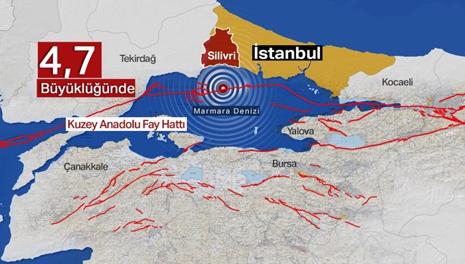 İstanbul başta olmak üzere Marmara Bölgesi’nin genelinde hissedilen bir deprem meydana geldi. AFAD, merkez üssü Marmara Denizi Silivri açıkları olan depremin büyüklüğünü 4,7 olarak açıkladı. İstanbul Valisi Ali Yerlikaya ve İstanbul Büyükşehir Belediye Başkanı Ekrem İmamoğlu depremle ilgili paylaşım yaptı. Deprem uzmanları ise 4.7’lik depremi yorumladı. İstanbul Teknik Üniversitesi’nden Prof. Haluk Eyidoğan, bu sabah Marmara’daki deprem fırtınasını araştırdığı sırada depreme yakalandığını anlattı.