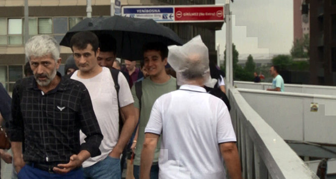Meteoroloji Genel Müdürlüğü’nün uyarılarının ardından İstanbul’da yağış başladı. Vatandaşlar yağmura hazırlıksız yakalanırken bir vatandaşın kafasına poşet geçirip gezmesi ilginç görüntülere neden oldu.