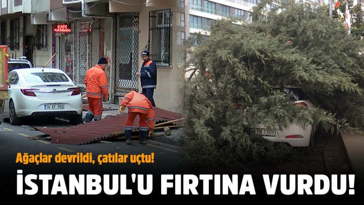 Ümraniye’de fırtınanın etkisiyle bir ağaç kökünden sökülerek otomobilin üstüne devrildi.