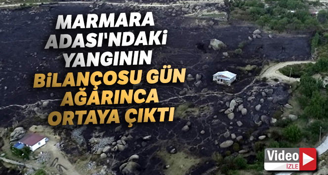 Balıkesir’e bağlı Marmara Adası’nda dün saat 13.30 sıralarında başlayan ve yaklaşık 11 saat sonra kontrol altına alınabilen yangının bilançosu gün ağarınca ortaya çıktı. Ormanlık alanda telef olan hayvanlar kameralara yansırken, vatandaş gün doğar doğmaz arazilerine akın etti. Yangın mahalli drone ile havadan görüntülendi.