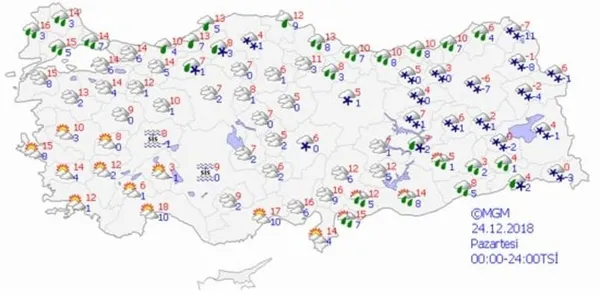 İstanbul’da 24 Aralık Pazartesi günü akşam saatlerinden sonra başlaması beklenilen yağışın zaman zaman kuvvetlenerek yağmur şeklinde olması, hava sıcaklığının azalmasıyla önce kentin yüksek kesimlerinde, zamanla il genelinde karla karışık yağmur, çarşamba günü ise aralıklarla hafif kar yağışının görülmesi bekleniyor.
