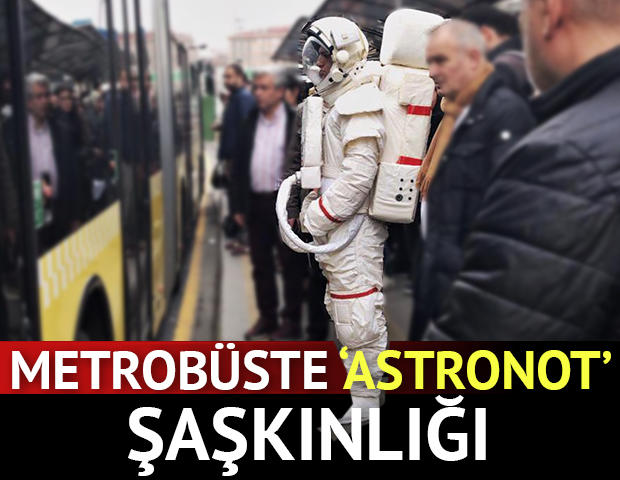 İstanbul’da astronot kıyafeti ile metrobüs durağında bekleyen bir vatandaş görenleri şaşkına çevirdi.