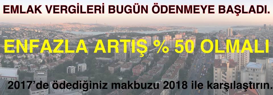 2017 YILINDA ÖDEDİĞİNİZ EMLAK VERGİSİ İLE 2018’de ÖDEYECEĞİNİZ VERGİ ARTIŞI EN FAZLA %50 OLAMALIDIR.
