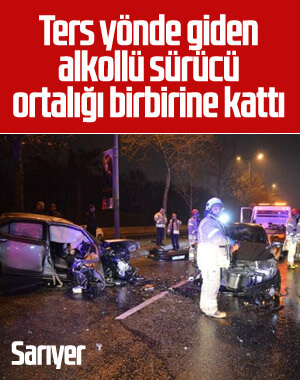 İstanbul Sarıyer’de ters yönde giden alkollü sürücü, ticari taksiye çarptıktan sonra başka bir otomobille çarpıştı.