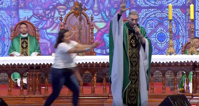 Brezilya’da bir kadın, vaaz sırasında “Şişman kadınlar cennete giremez” diyen papazı sahneden aşağı itti.