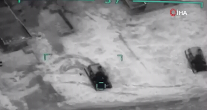 İnsansız Hava Araçları’ndan alınan görüntülerde, atış destek unsurlarının ve hareketli rejim konvoyunun vurulduğu görüntüler kaydedildi.