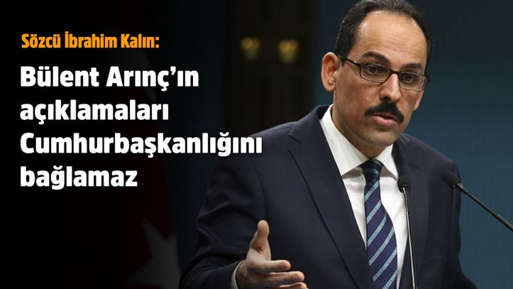 Cumhurbaşkanlığı Sözcüsü İbrahim Kalın, Yüksek İstişare Kurulu üyesi Bülent Arınç’ın, görevden uzaklaştırılarak yerine kayyım atanan Mardin Büyükşehir Belediye Başkanı Ahmet Türk’le ilgili sözlerine,” Yaptığı bu açıklamalar şahsi fikirleridir. Cumhurbaşkanlığını bağlamaz” dedi.