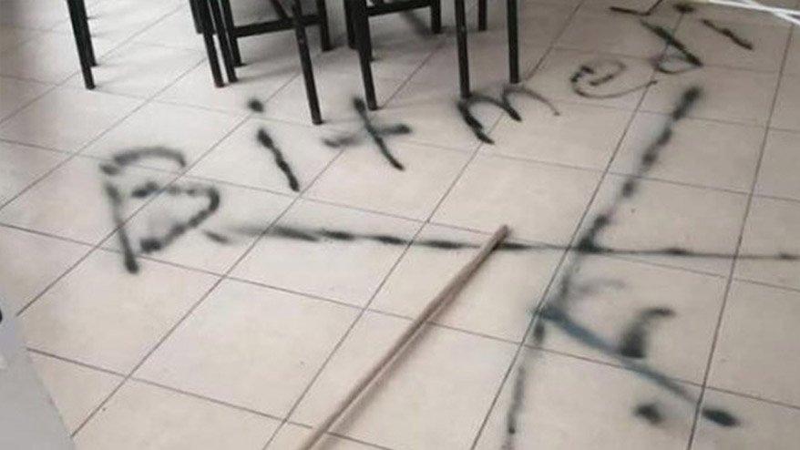Yönetim odasını dağıtarak evrakları karıştıran kişiler daha sonra kafeteryada bulunan bağış kumbarasını kırarak içindeki parayı aldı. Kafeteryanın camına ‘ölüm’, yere ise bir çarpı işareti ve ‘bitmedi’ yazan şüpheliler, daha sonra girdikleri yerden çıkarak kayıplara karıştı.