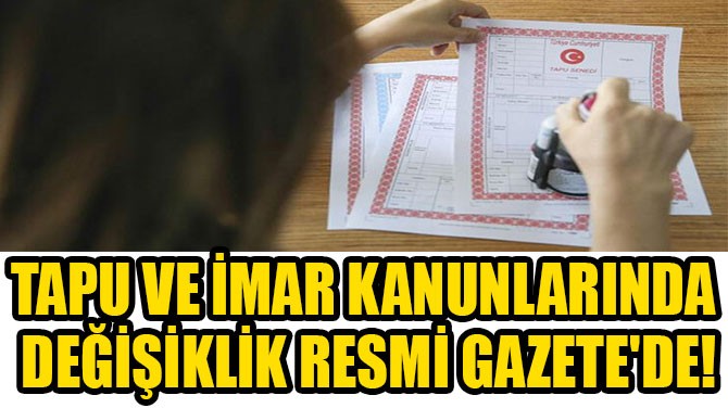 Tapu Kanunu ve Bazı Kanunlarda Değişiklik Yapılmasına Dair Kanun, Resmi Gazete’de yayımlanarak yürürlüğe girdi.