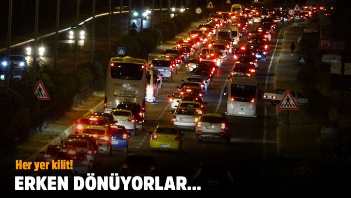 Kurban Bayramı tatilini erken tamamlayan vatandaşların dönüş yolculuğu başladı. Tekirdağ-İstanbul Yolunda araçlar uzun kuyruklar oluşturdu. Balıkesir’in Ayvalık, Burhaniye ve Edremit ilçelerinin bulunduğu körfezde trafik yoğunluğu yaşanıyor.