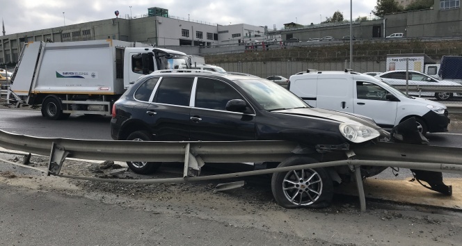 TEM Otoyolu Seyrantepe mevkisi yan yolda kontrolden çıkan lüks cip, bariyerlere saplandı. Kullanılamaz hale gelen aracın sürücüsü kazadan yara almadan kurtulurken, itfaiye ekipleri araçtaki LPG tankı nedeniyle uzun süre tedbir amaçlı bekledi.