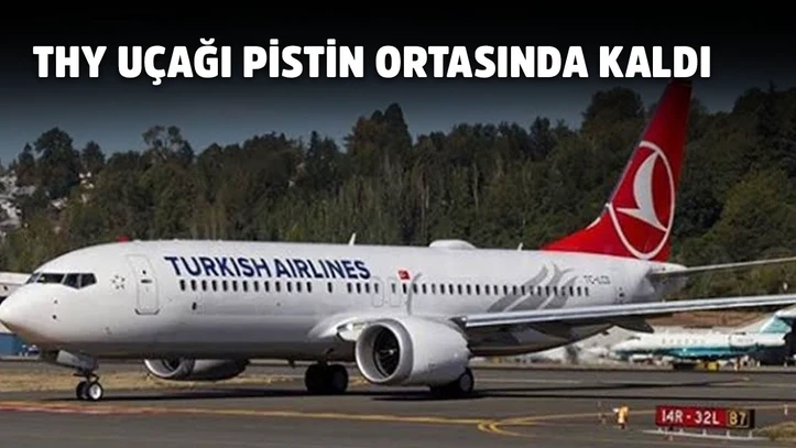 THY uçağı indikten sonra ön dikmesinin çıkması nedeniyle pist ortasında kaldı