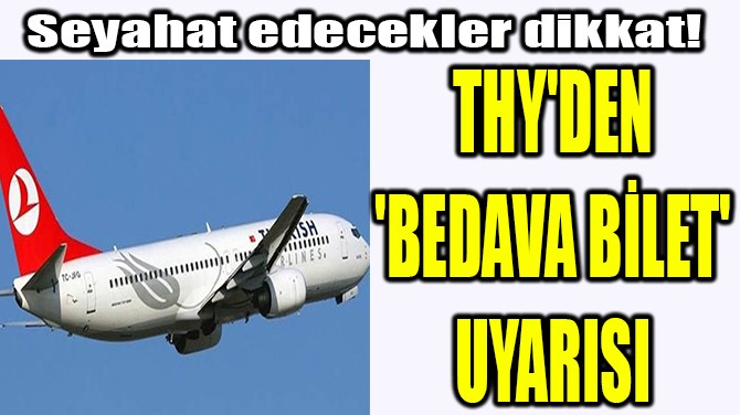 Türk Hava Yolları (THY) yolcularına yönelik bir uyarıda bulanarak Sosyal medya platformlarında “100. yıldönümümüzü kutluyor ve herkese 2 bedava bilet veriyoruz” paylaşımlarına dikkat edilmesi konusunda uyarıda bulundu.