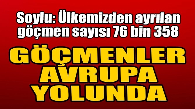 İçişleri Bakanı Süleyman Soylu, saat 09.55 itibarıyla Edirne üzerinden Türkiye’den ayrılan göçmen sayısının 76 bin 358 olduğunu açıkladı.