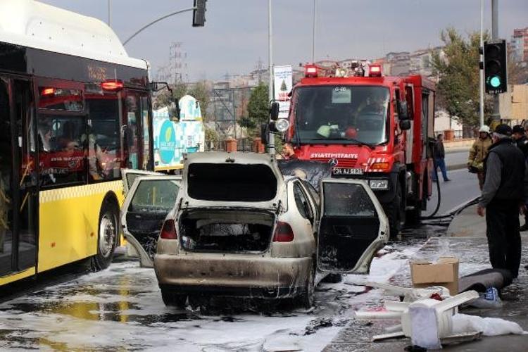 İstanbul Beyoğlu’nda seyir halinde olan bir otomobilde henüz belirlenemeyen bir nedenle yangın çıktı. Alev topuna dönen otomobilde bulunan yürüme engelli Azize Şahin ise aracın sürücüsü damadı Necati Sökmen tarafından yanmaktan son anda kurtarıldı. Otomobilden birden dumanlar yükselerek alev aldığını belirten Necati Sökmen, ”Kayınvalidem engelliydi, onu arabadan aşağı indirmek için çok mücadele ettim” dedi. Otomobilin alev alev yandığı anlar bir vatandaş tarafından cep telefonu kamerasıyla saniye saniye kaydedildi.