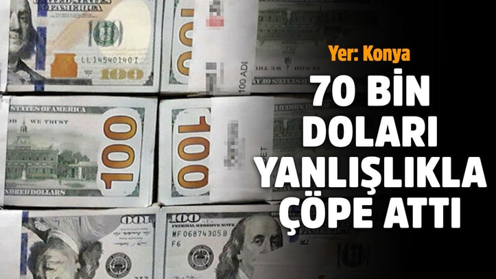 Konya’da, iş insanı Eyüp Güçlü’nün bankadan çekip poşet içerisine koyduğu 70 bin dolar, temizlik sırasında yanlışlıkla çöpe atıldı. Belediye ekiplerince toplanan çöplerin izini süren Güçlü, işçiler ile birlikte yaptığı aramada parayı bularak teslim aldı.