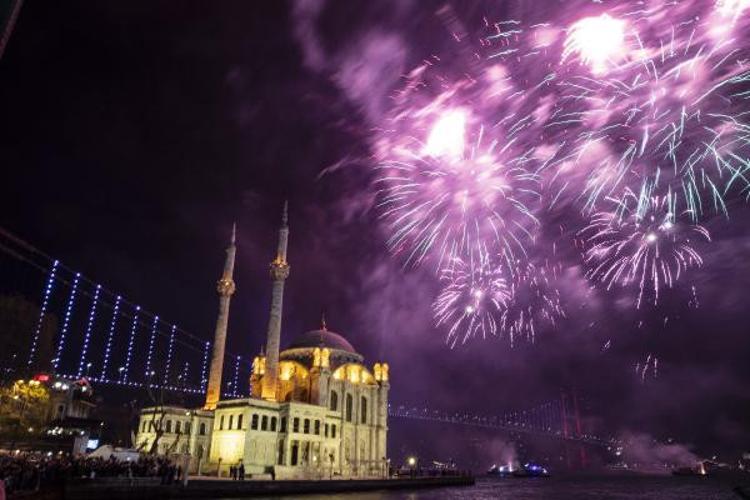 Etkinliğe katılanlar, deniz yüzeyine kurulan platformdan yapılan havai fişek ve ışık gösterisi ile Büyük Mecidiye Camisi ve 15 Temmuz Şehitler Köprüsü manzarasıyla yeni yıla “merhaba” dedi.