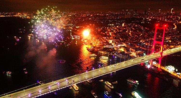 Saatin 00:00’ı göstermesiyle boğazda havai fişek gösterisi yapıldı.